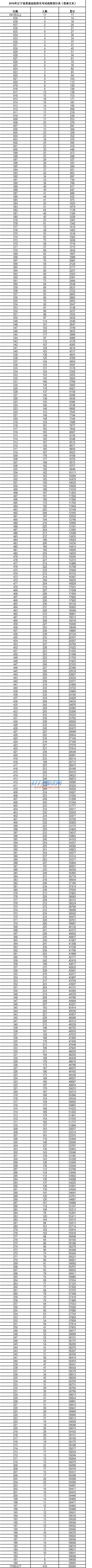 2016辽宁高考一分一段统计表(文科)