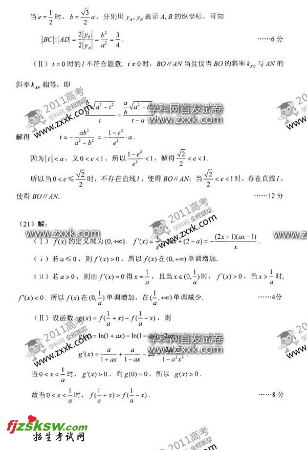 辽宁2011年高考文科数学答案