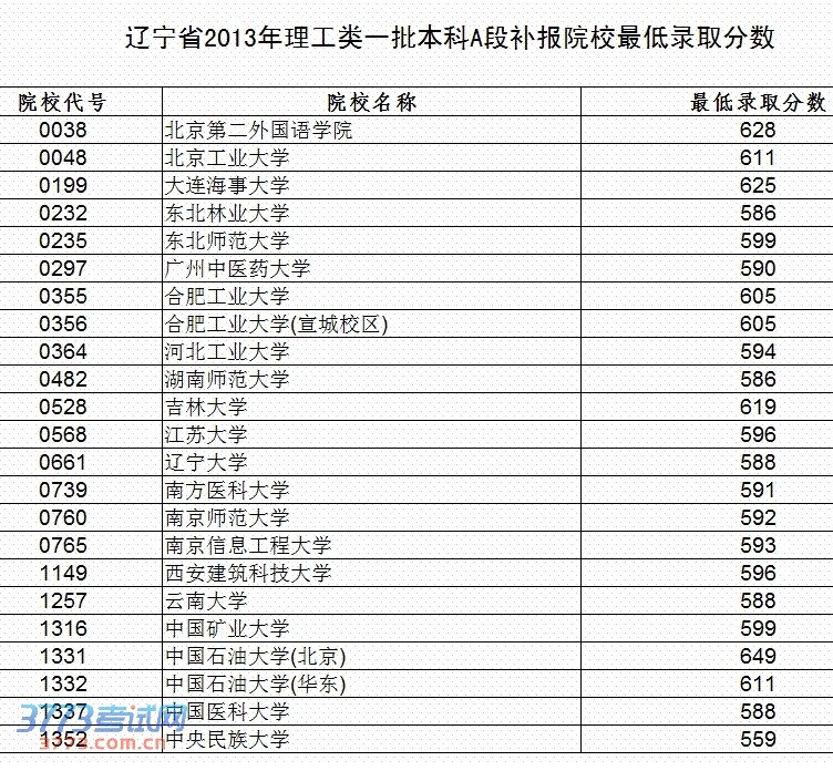 2013辽宁高考一A院校录取分数线公布