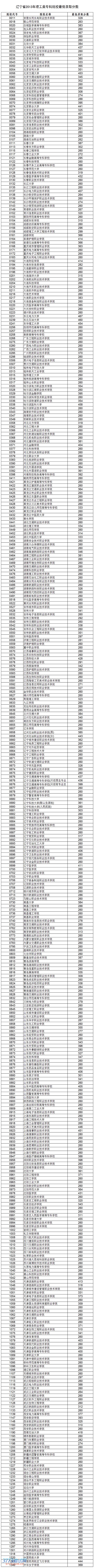 2013辽宁高考理科专科院校录取分数线