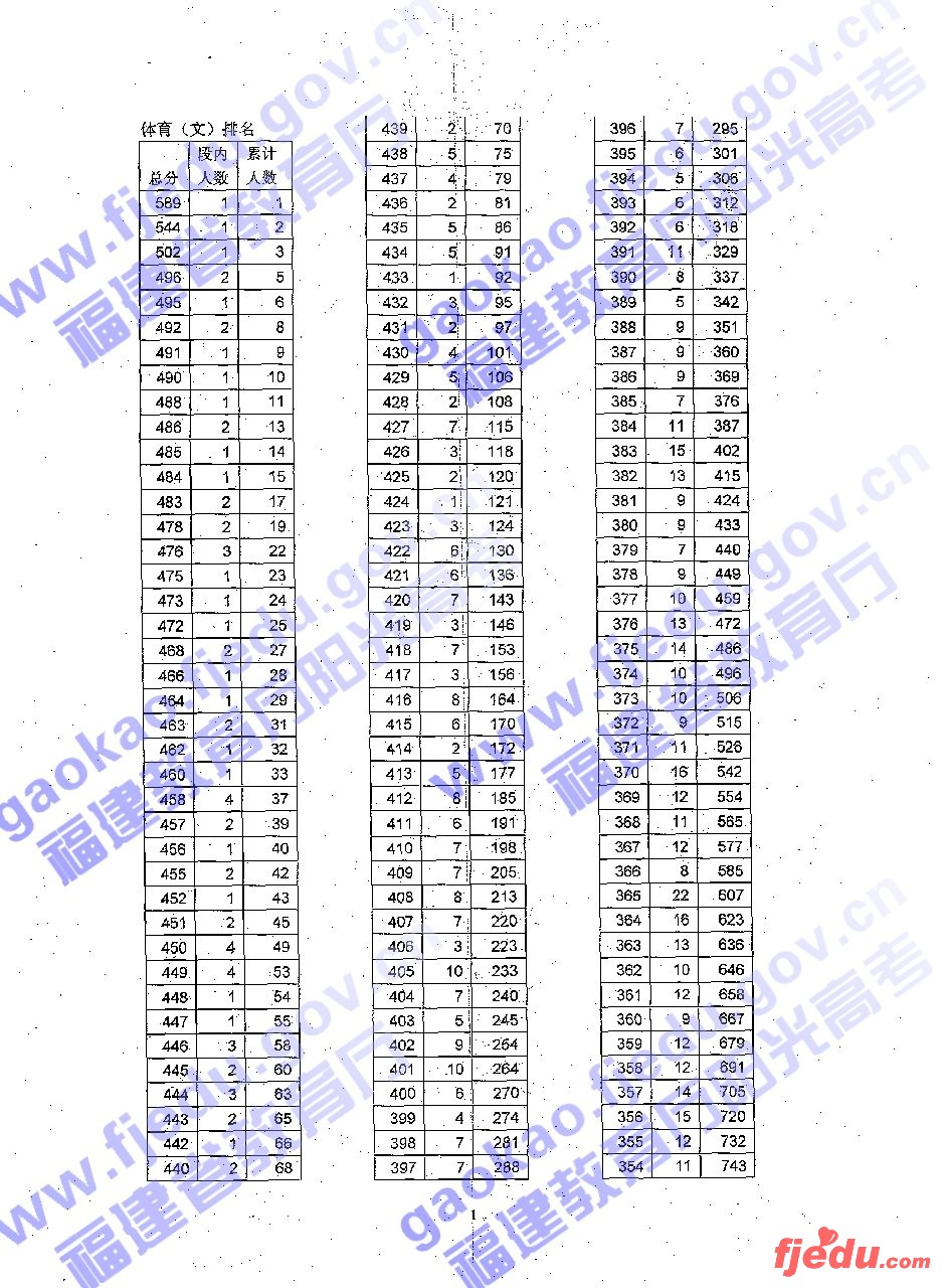 福建省2008年高考文科体育成绩排名(来源福建教育厅)