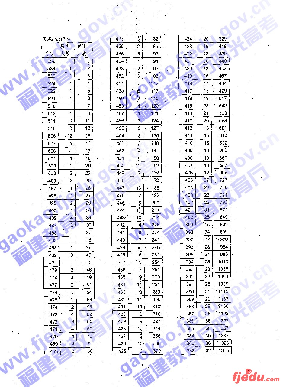 福建省2008年高考文科美术成绩排名(来源福建教育厅)