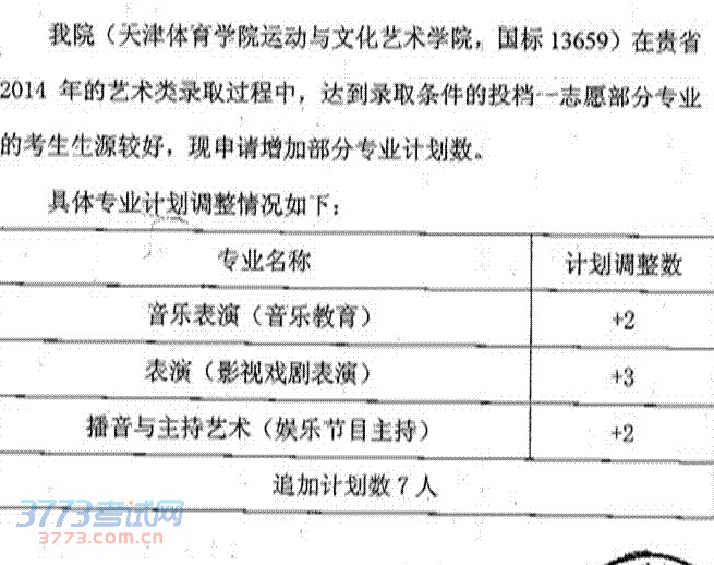 2014天津体育学院运动与文化艺术学院增加内蒙古计划的通知