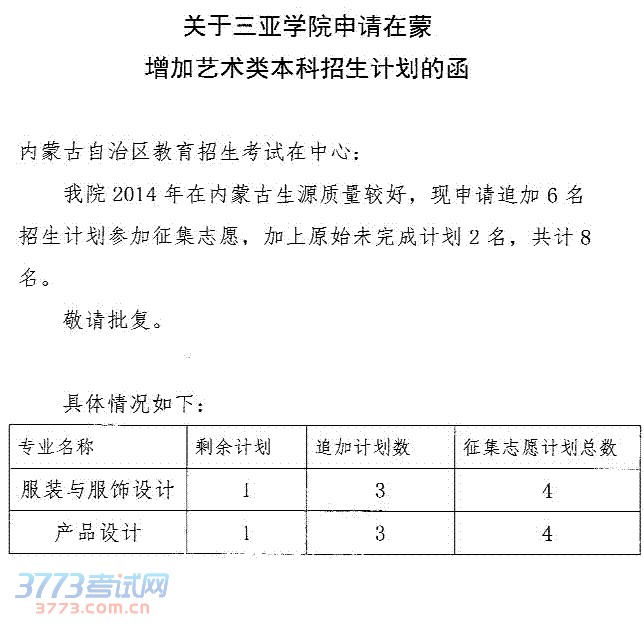 2014内蒙古高考本科提前B批三亚学院增加计划的通知