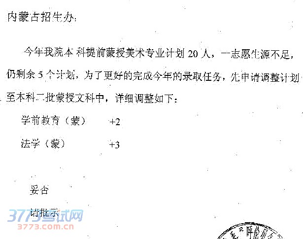 2014内蒙古本科提前B四川传媒学院增加计划的通知