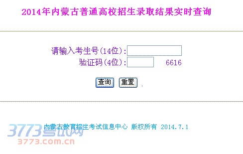 2014年内蒙古高考录取结果查询入口