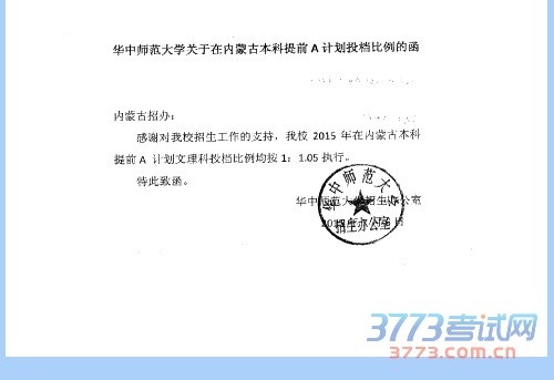 华中师范大学关于在内蒙古提前批次A计划投档比例的通知