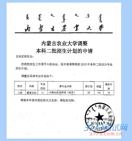 内蒙古农业大学内蒙古增加二本批预科计划的说明