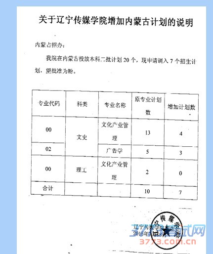 辽宁传媒学院增加计划的说明