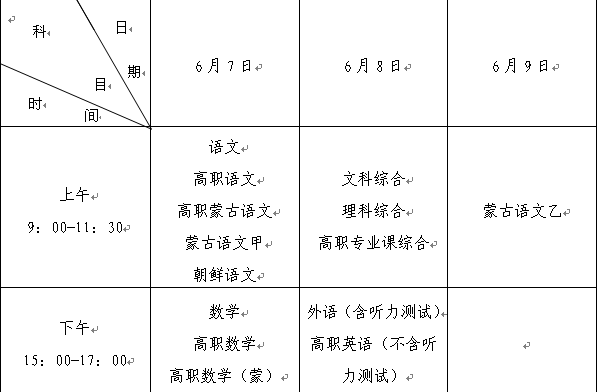 依据教育部有关文件精神,现就我区普通高考各科目考试时间做如下安排,请各地做好宣传及相关工作: