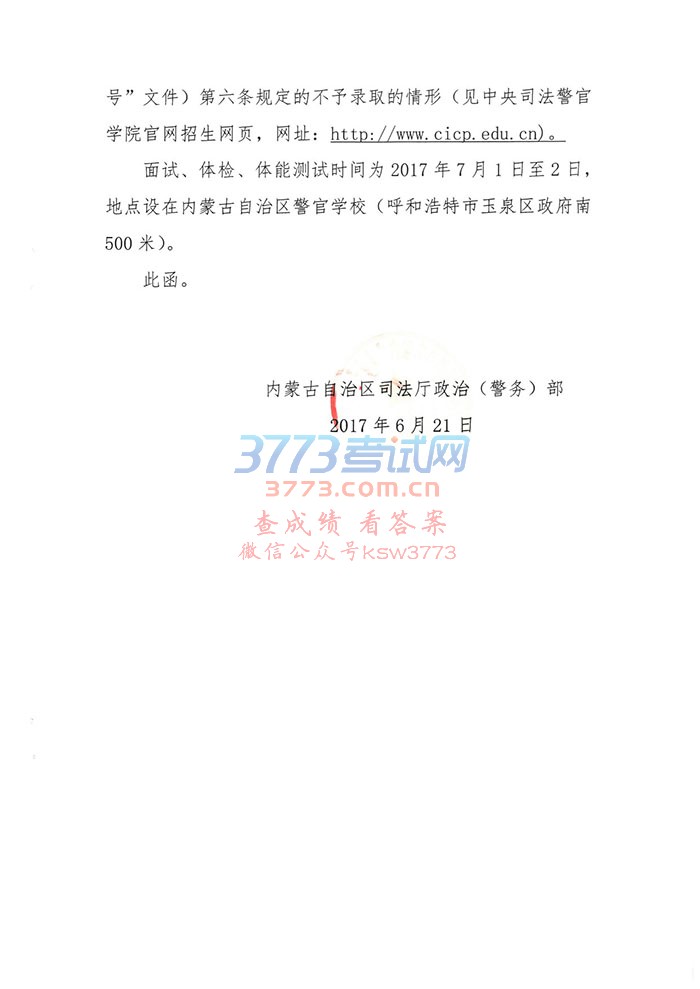 关于提交中央司法警官学院内蒙古意向志愿初步条件的函
