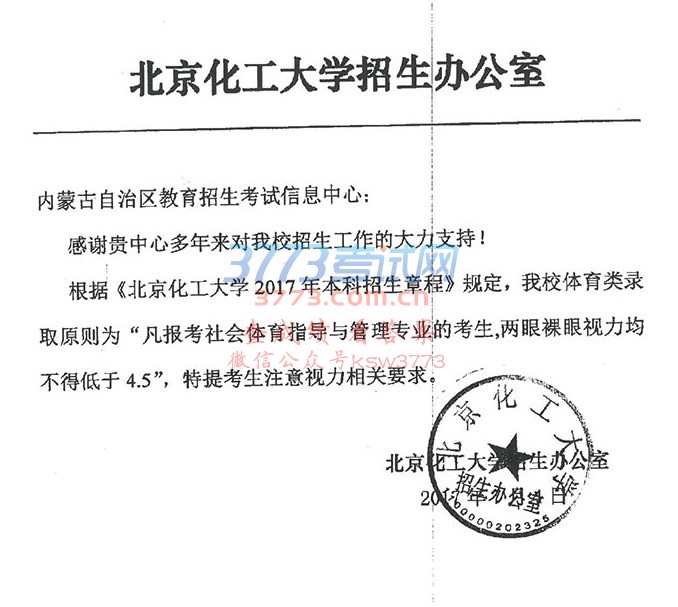 2017北京化工大学内蒙古体育专业录取