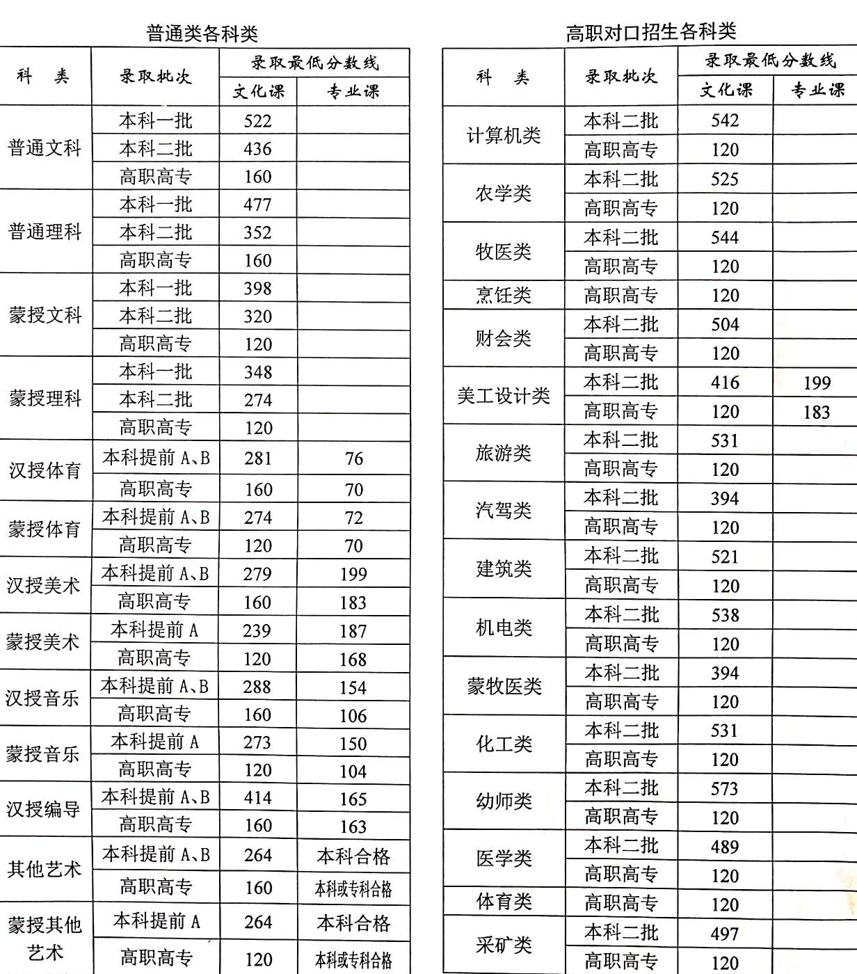经内蒙古自治区招生考试委员会6月23日全体会议审议通过,现将2019年内蒙古自治区普通高等学校招生录取最低控制分数线公告如下: