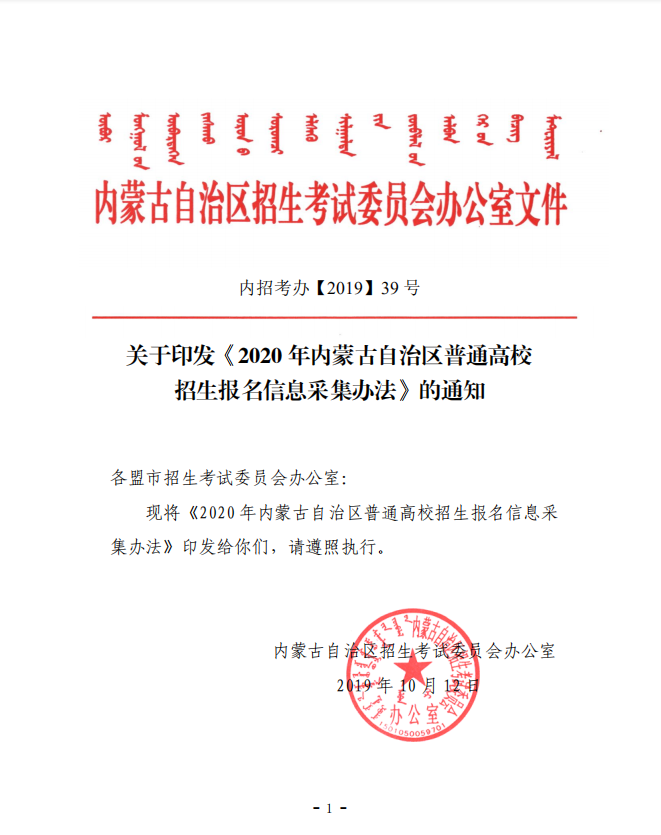2020年内蒙古自治区普通高校招生报名信息采集办法