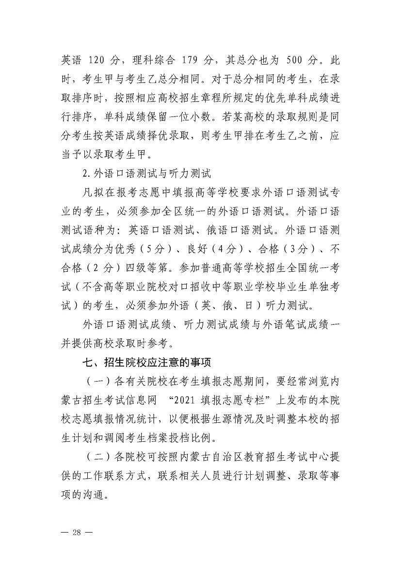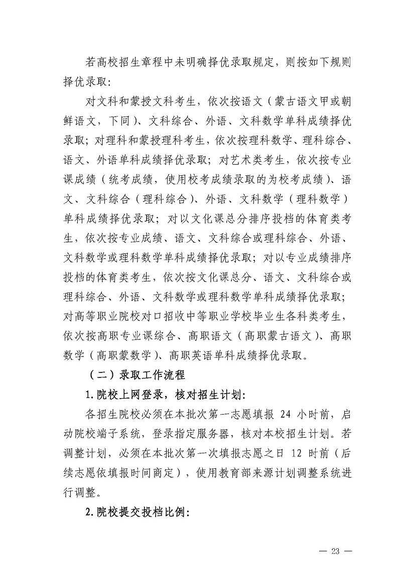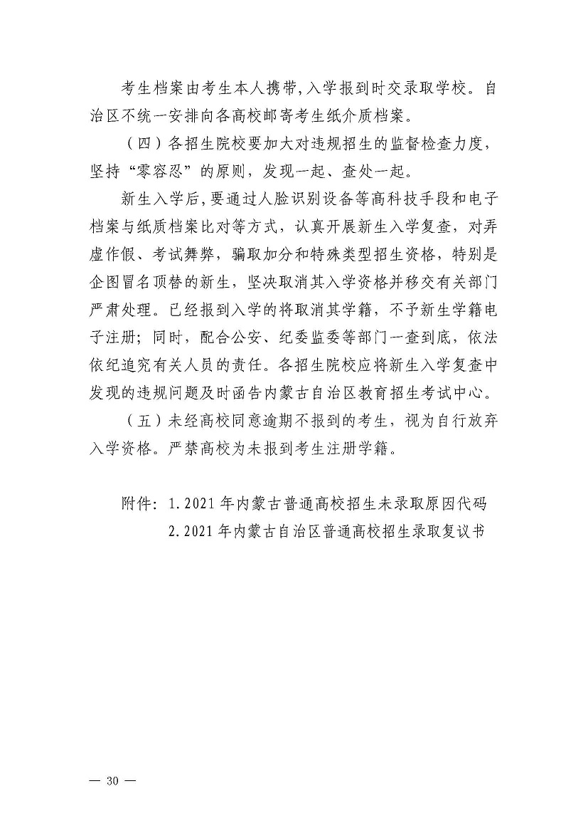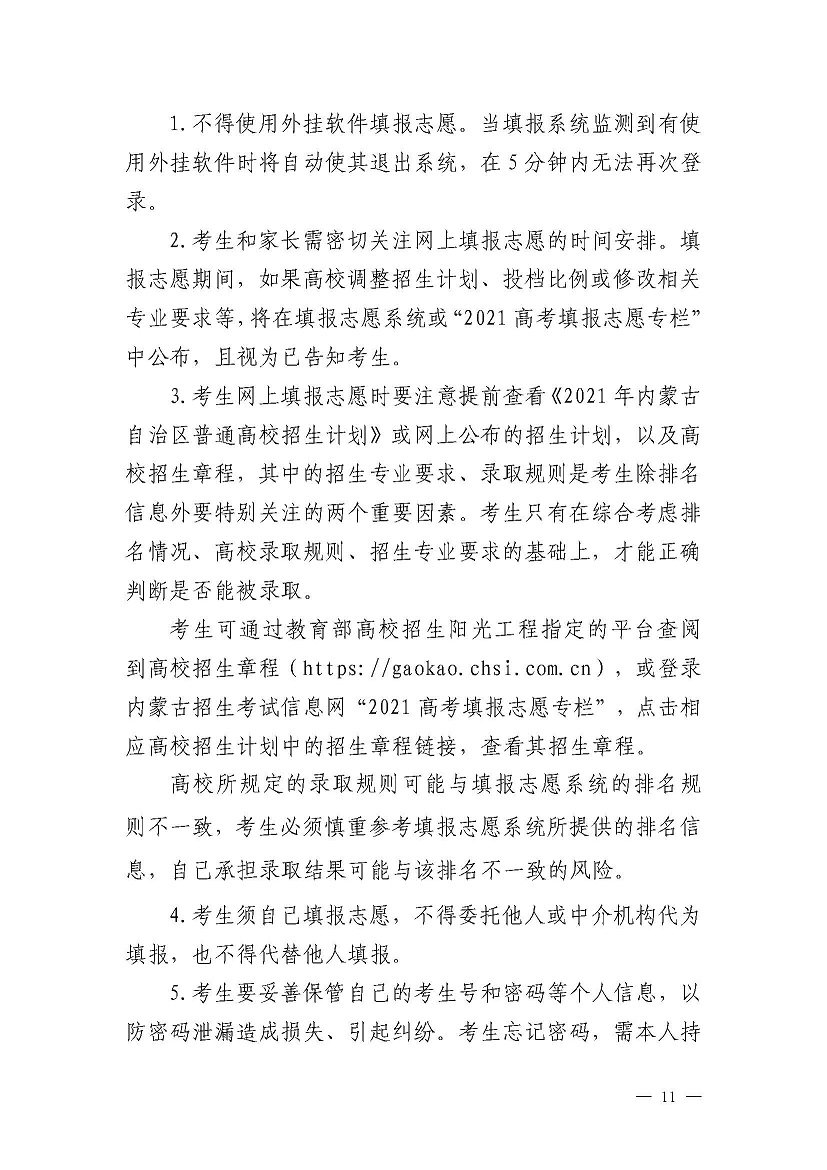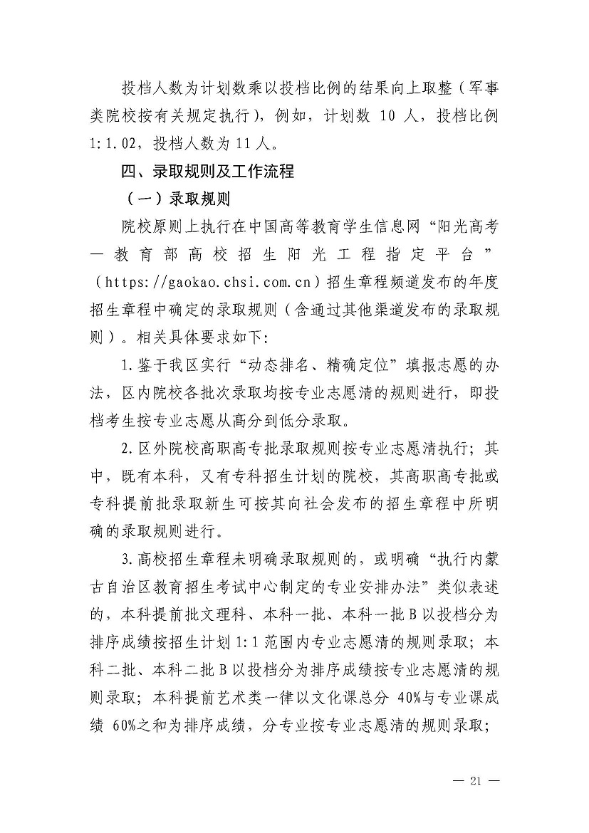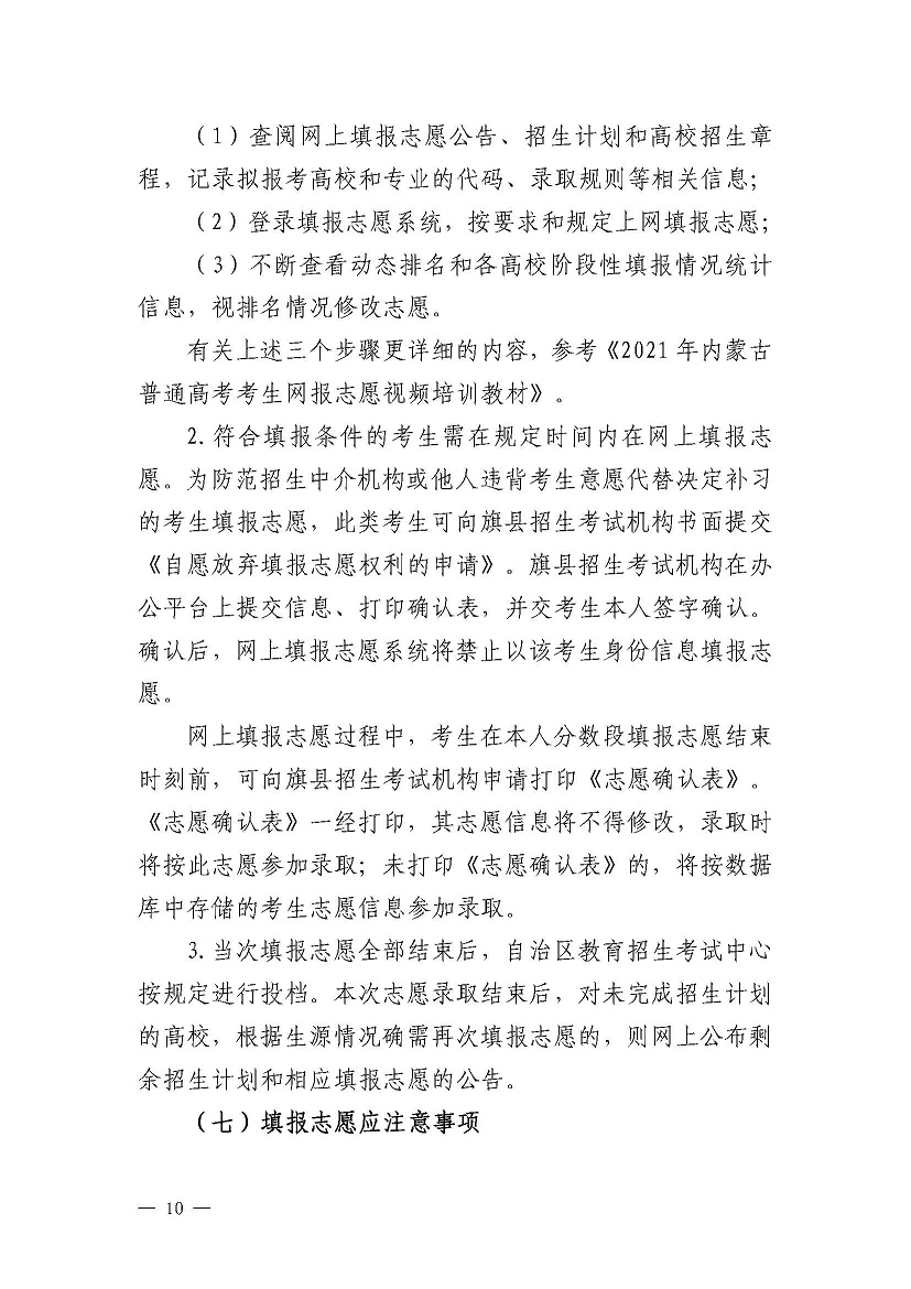 2021内蒙古高考网上填报志愿和投档录取工作实施办法