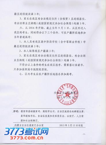 内蒙古外务工人员随迁子女参加高考方案