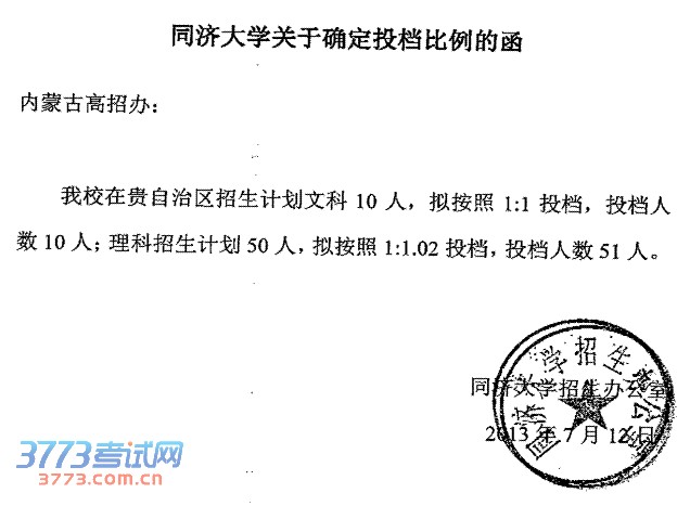 2013内蒙古高考部分一本院校调整投档比例的通知