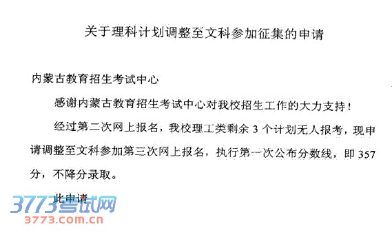 吉林华侨外国语学院关于理科计划调整至文科参加征集的申请