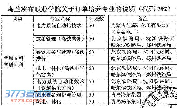 乌兰察布职业学院2013内蒙古订单培养专业的说明