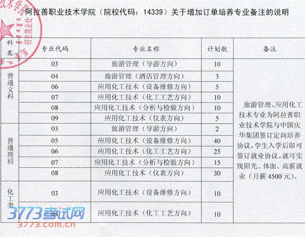 阿拉善职业技术学院增加订单培养专业备注的说明