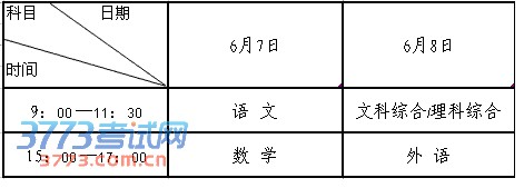 年普通高等学校招生全国统一考试科目时间安排通知如下: