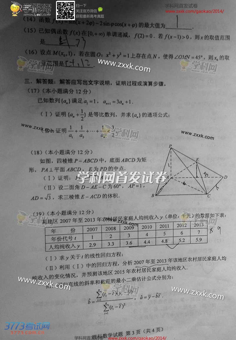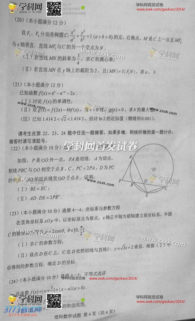 2014青海高考数学理科试题及部分答案(新课标2卷)