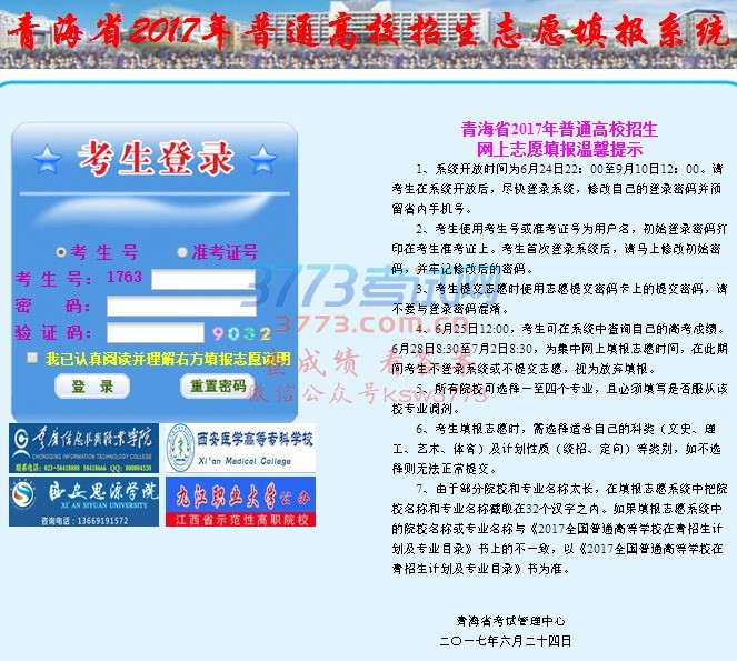 青海省2017年普通高校招生网上志愿填报温馨提示