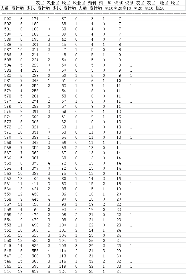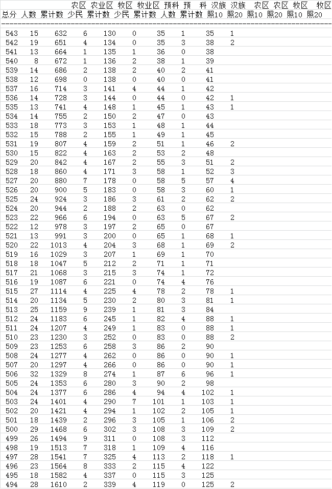 2017青海高考文科成绩分段表