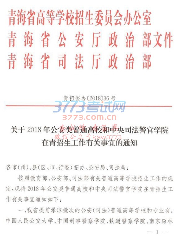 公告1506 月关于2018年公安类普通高校和中央司法警官学院在青招生工作有关事宜的通知