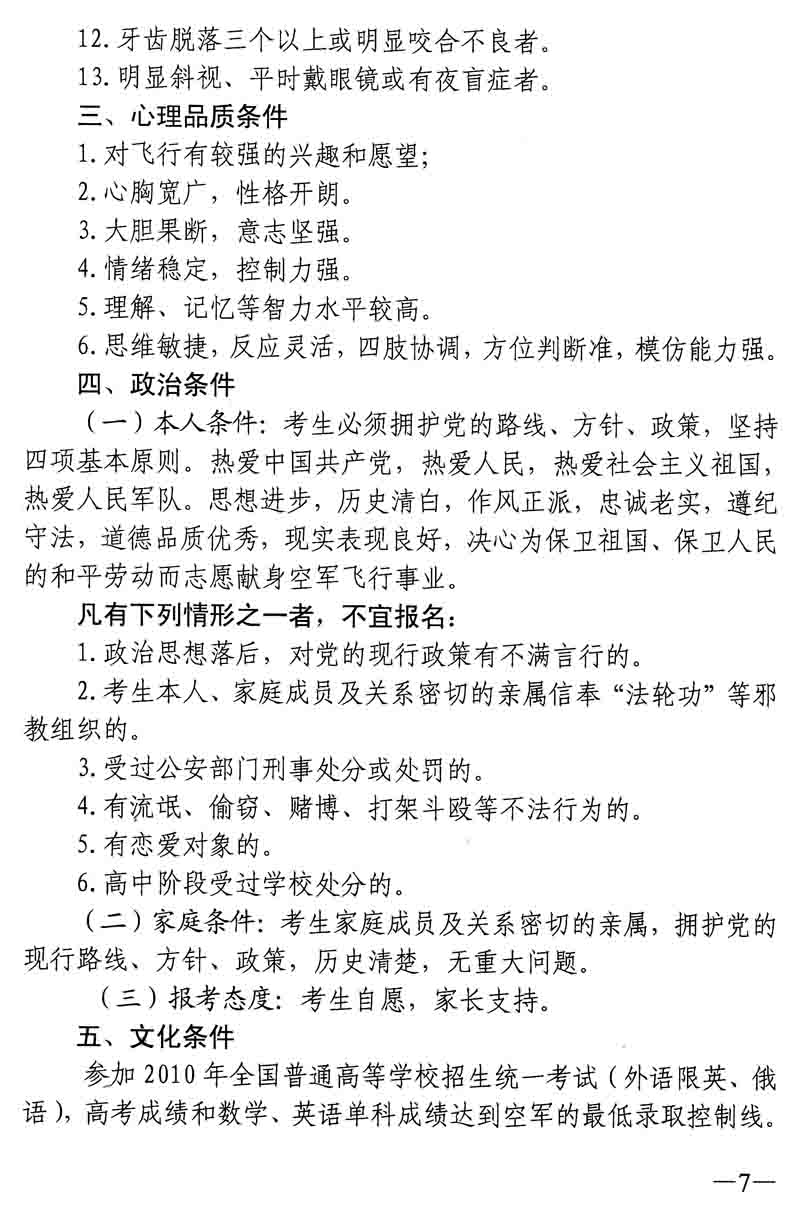 2010年上海市空军招收飞行学员文化测试11月22日进行
