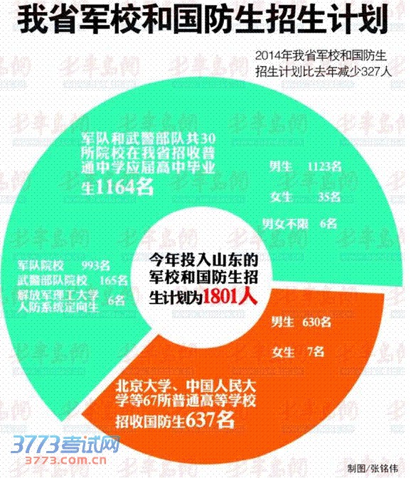 2014年,投入山东的军校和国防生招生计划为1801人,与去年的2128人相比,减少327人,但仍是全国招生计划总数最多的省份。