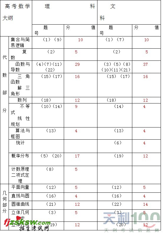 山东省2011年数学高考考试说明