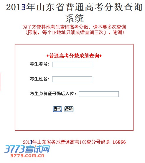 2013年山东高考成绩查询网址
