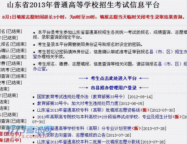 此外,为了保证考生8月1日当天能顺利填报志愿,7月31日9:00至17:00考生可在山东省2013年普通高等学校招生考试信息平台(http://wsbm.sdzk.gov.cn)上测试验证密码,部分考生可能遗忘密码,请尽快携带相关证件到区市招办找回密码。记者刘雪莲