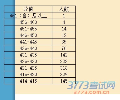 分值人数461(含)及以上1456-4604451-45514446-45012441-44535436-44076431-435142426-430228421-425318416-420329414-415145