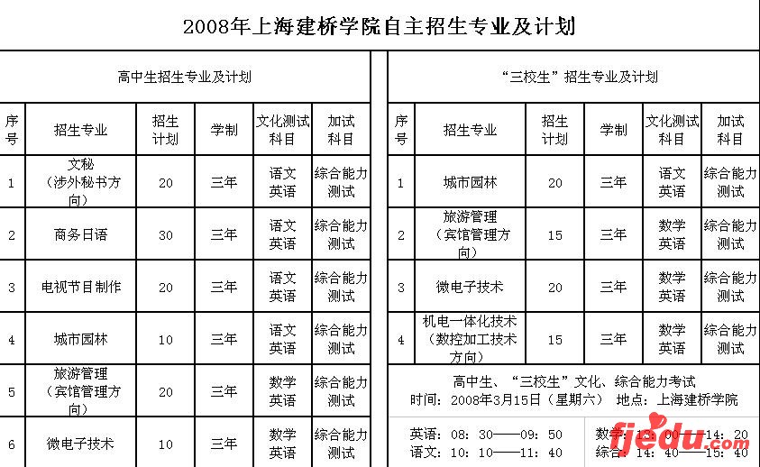 | 福建招考网整理自:上海建桥学院 2008-2-22 9:06:17 |