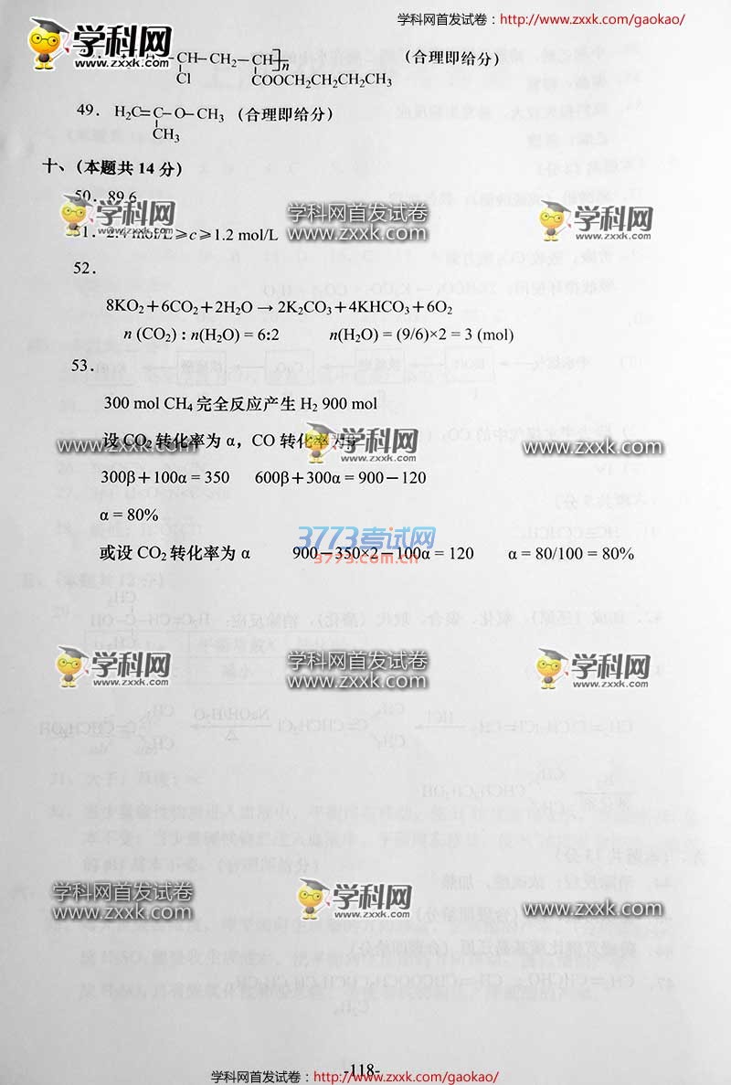 2016上海高考化学试题及答案发布