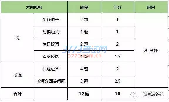 听说测试部分采用人机对话形式,试卷满分为10分,实际考试时间为20分钟。笔试部分的卷面成绩听说测试部分的卷面成绩相加后形成考生最终的高考英语成绩。