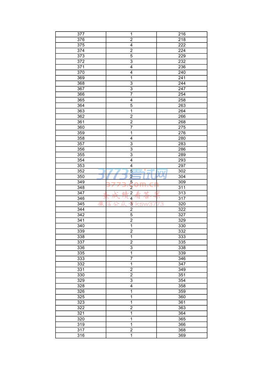为便于考生填报志愿,现公布如下成绩分布信息,供考生参考。