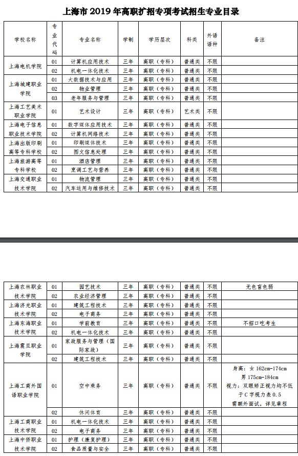上海电机学院 01 计算机应用技术 三年 高职(专科) 普通类 不限