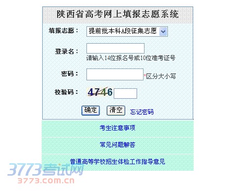 2014陕西高考提前批本科A段征集志愿填报系统