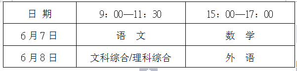 5.全省高考(一类模式除外)于678日统一组织进行。各科目考试时间(北京时间)安排如下: