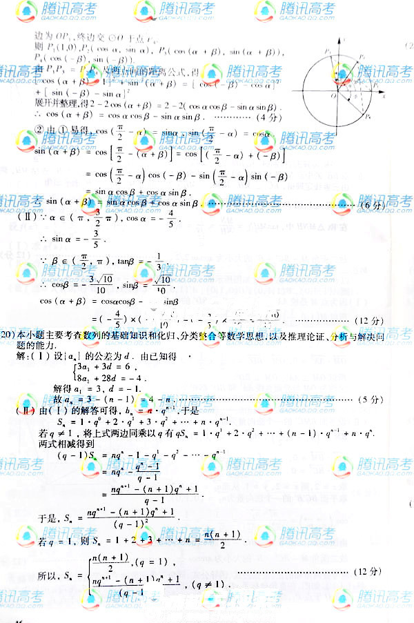 2010年四川高考文科数学试题答案