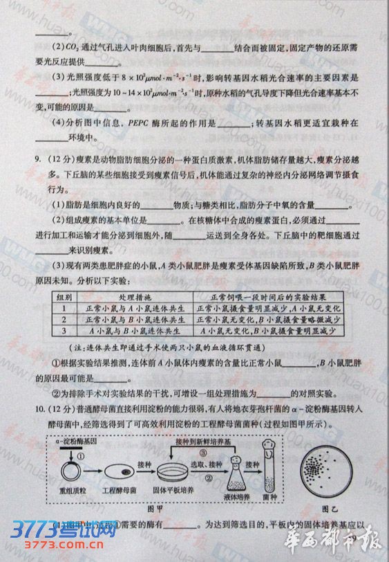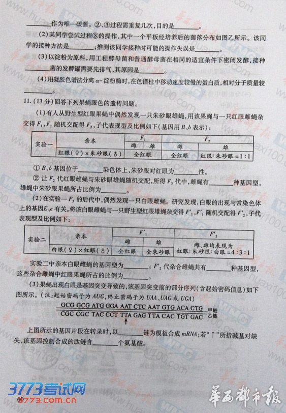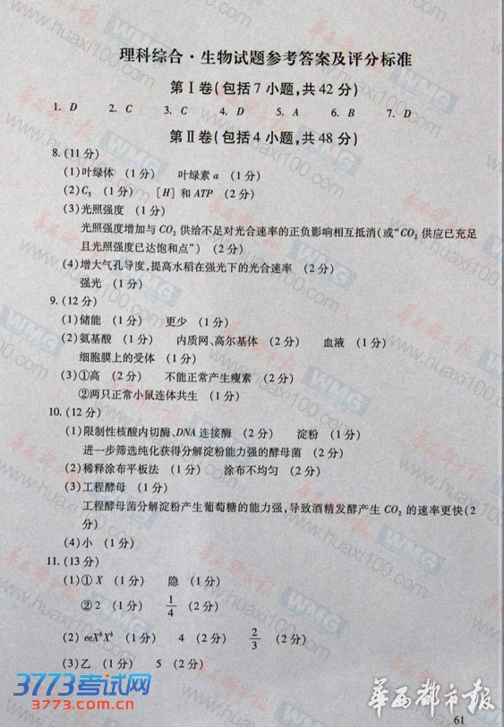 2013四川高考理综试题及部分答案