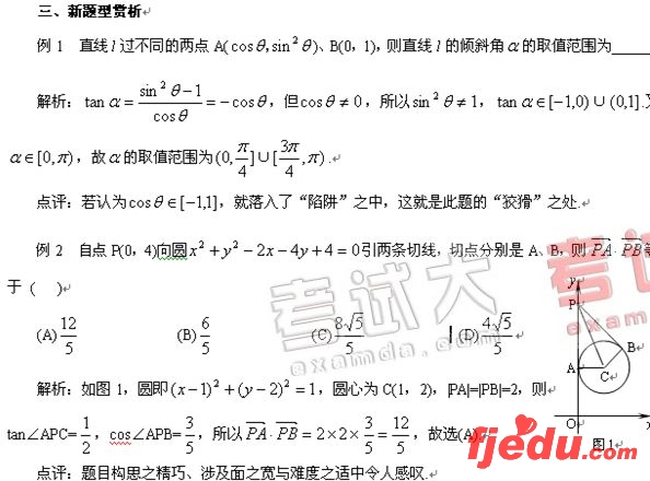 (3)反映“在知识交汇处命题”的理念.这种“交汇”现已突破《解析几何》的圈子,而在更加广阔的天地里驰骋.所以我们应该以整个中学数学知识为背景,全方位地复习、巩固“双基”,不能有丝毫的侥幸心理.