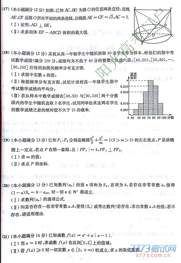 2015江南十校联考二模数学文科试题及答案