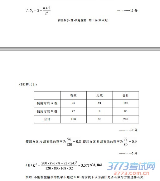 …………12分高三数学(理)试题答案 第2页(共6页)