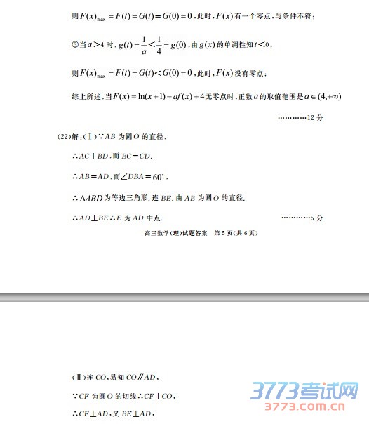 ∴AD⊥BE∴E 为AD 中点. …………5分高三数学(理)试题答案 第6页(共6页)