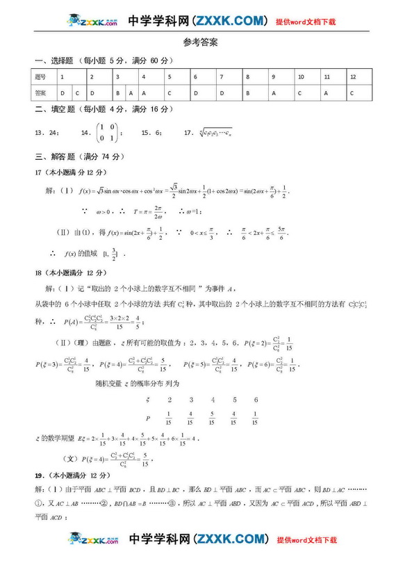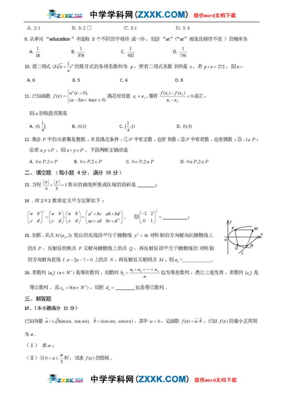 江西2011年高考理科数学试题