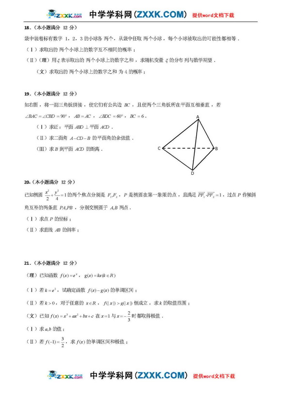 2009年高考数学文试题最有可能考的20道
